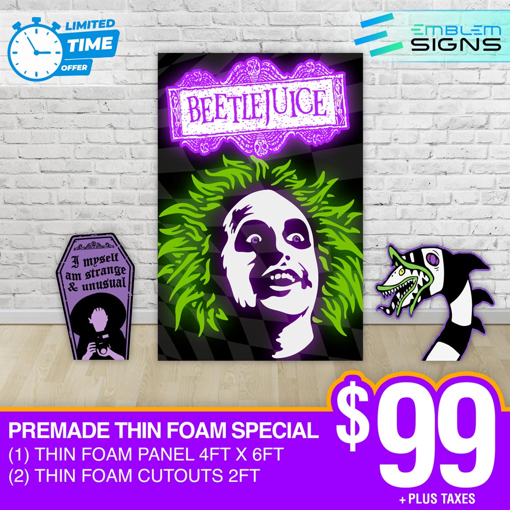 Print Ready Setups – No design needed. These setups are crafted from high-quality, durable foam board, ensuring high quality and vibrant colors. The product image is the print you will receive.