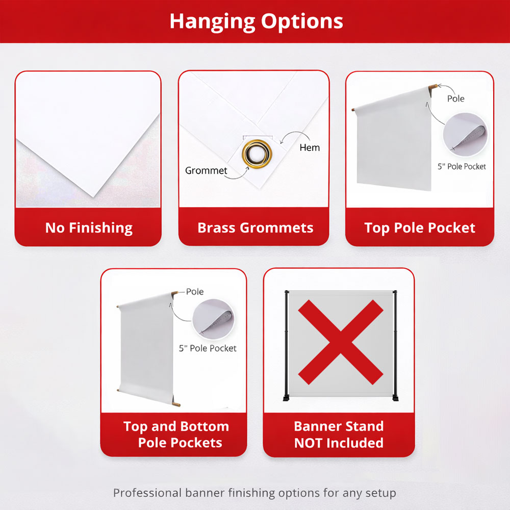 Custom printed backdrops are vinyl banners that are printed with custom graphics. Commonly used as a backdrop for events such as weddings, photo shoots, trade shows, and more.